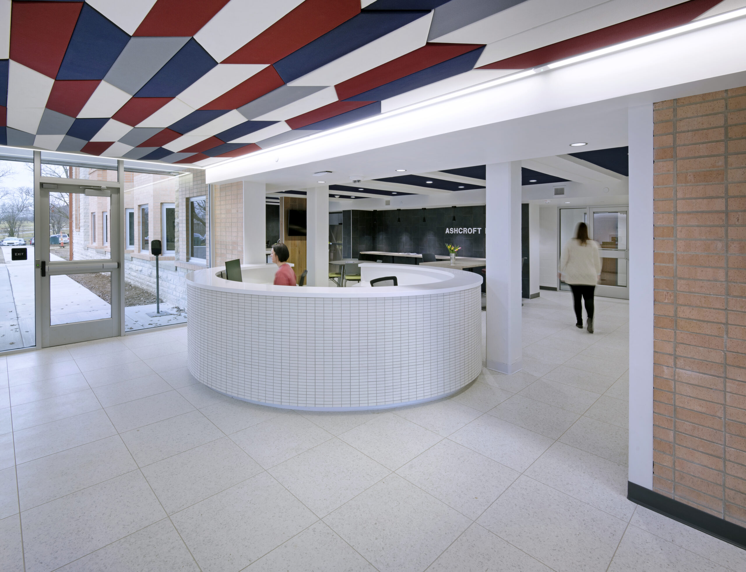 Ashcroft Hall is a 31,000 sf – 115 bed capacity women’s residence hall that was constructed by campus staff in 1964. DeWitt served as the Construction Manager (CMR) for the dormitory renovation. The cast-in-place concrete structure required a complete renovation including replacement of all existing windows and doors, interior finishes, and the mechanical, electrical and plumbing systems in addition to a new fire suppression system and code compliant stairway modifications.