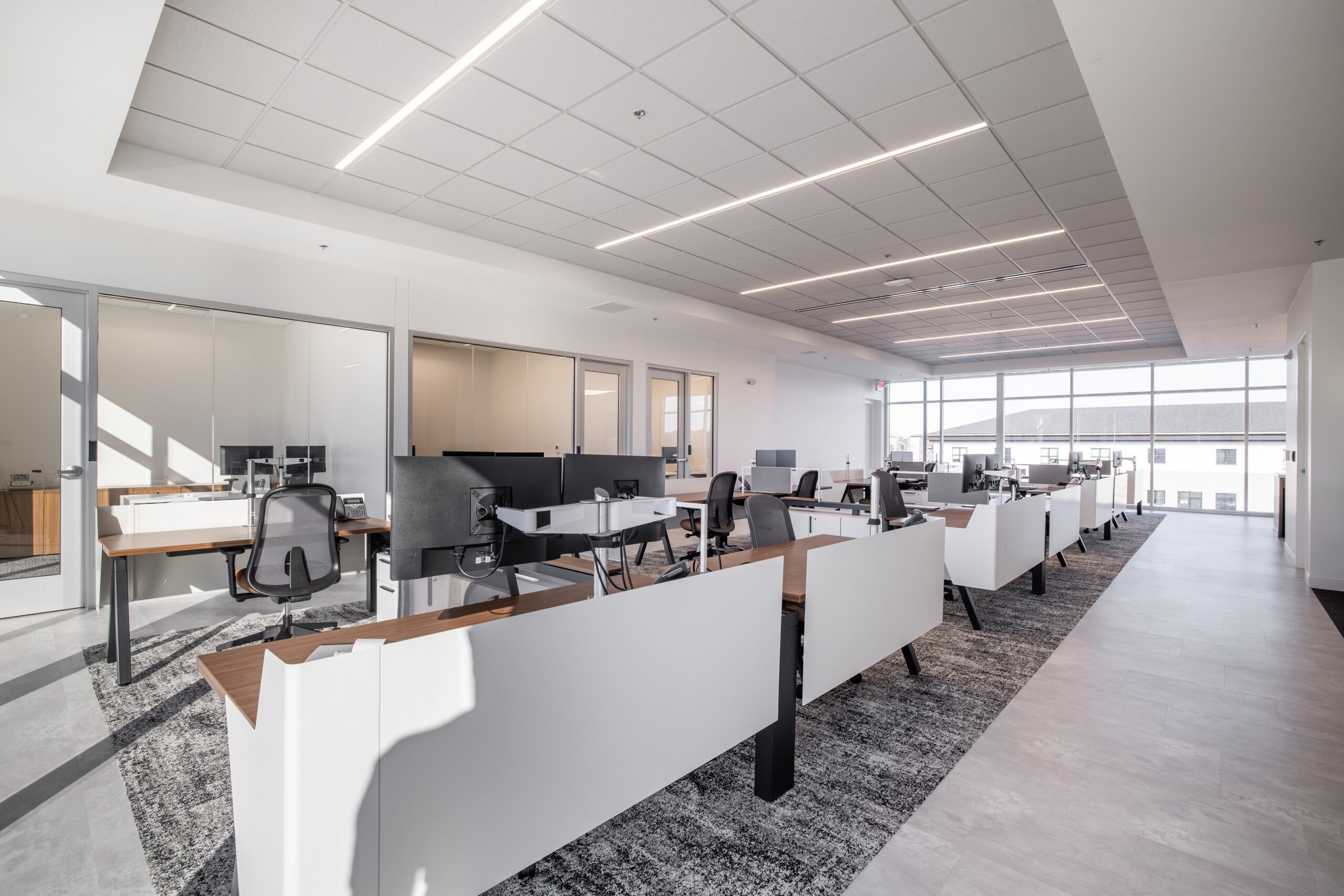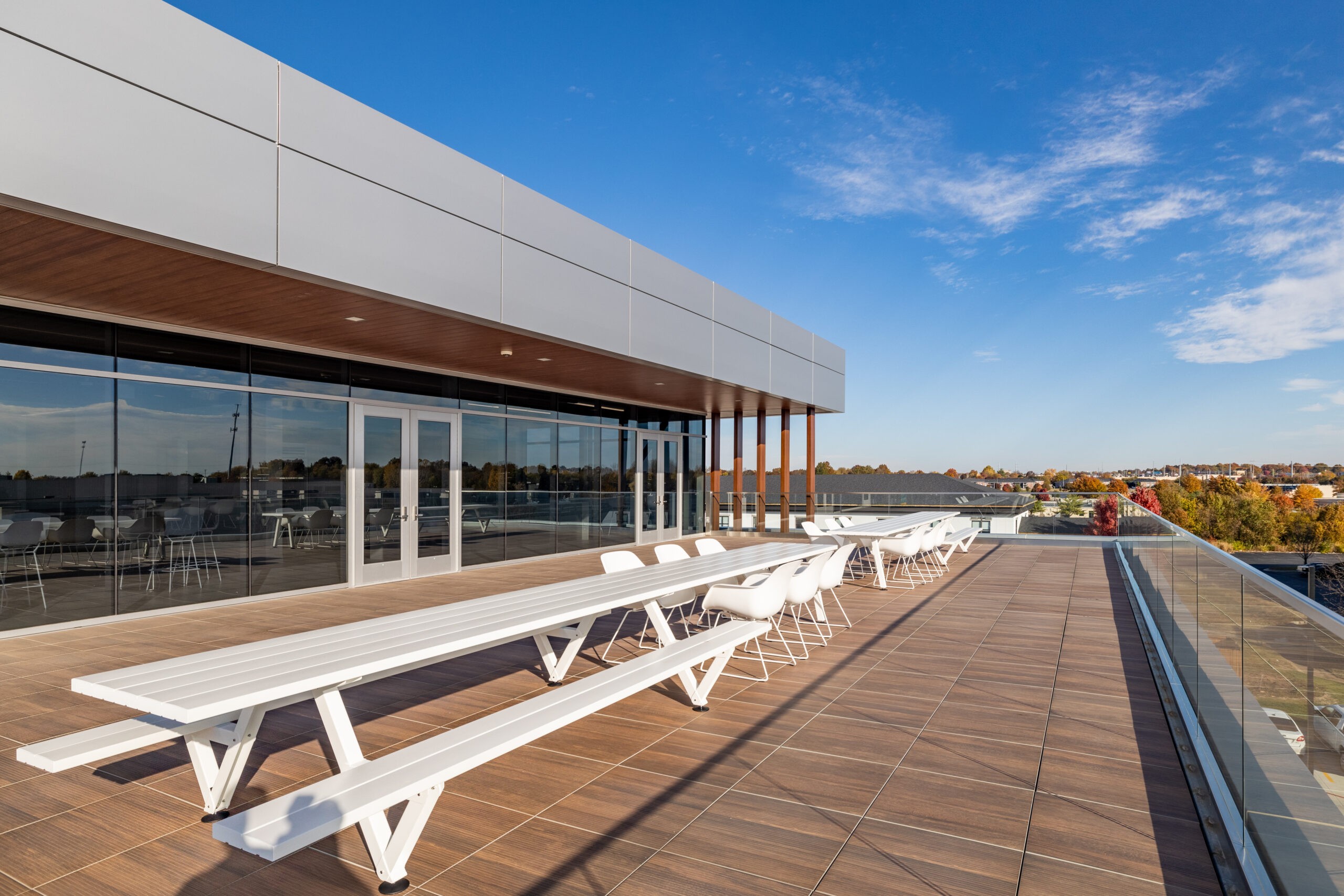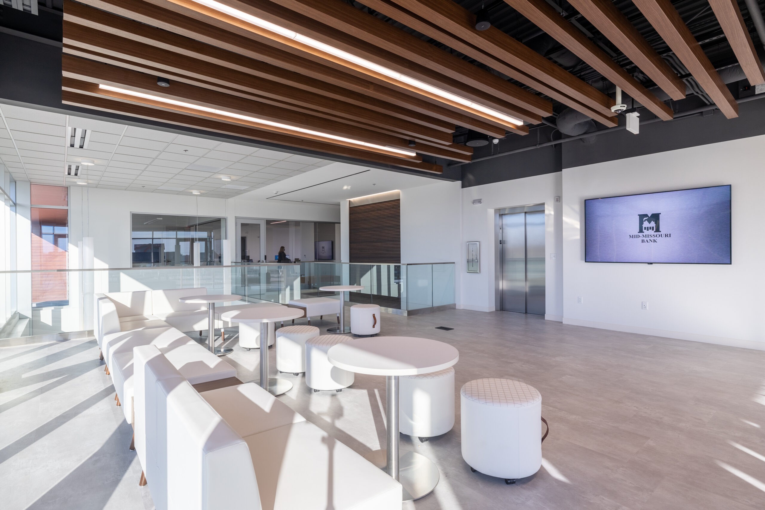DeWitt served as the Construction Manager on this 3-story, 21,000 sf facility which is home to Mid-Missouri Bank’s Operations Center in Springfield, MO. The building includes a 3,000 sf full-service bank on the first floor, a rooftop terrace, bridged walkways, open foyer, conference rooms, board rooms, and break rooms. The south side of the building is primarily glass storefront allowing natural light to flow through the building. The parking lot is also equipped with charging stations for electric cars.