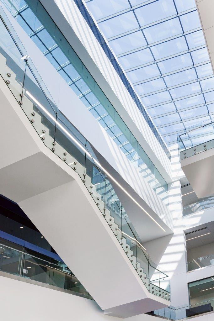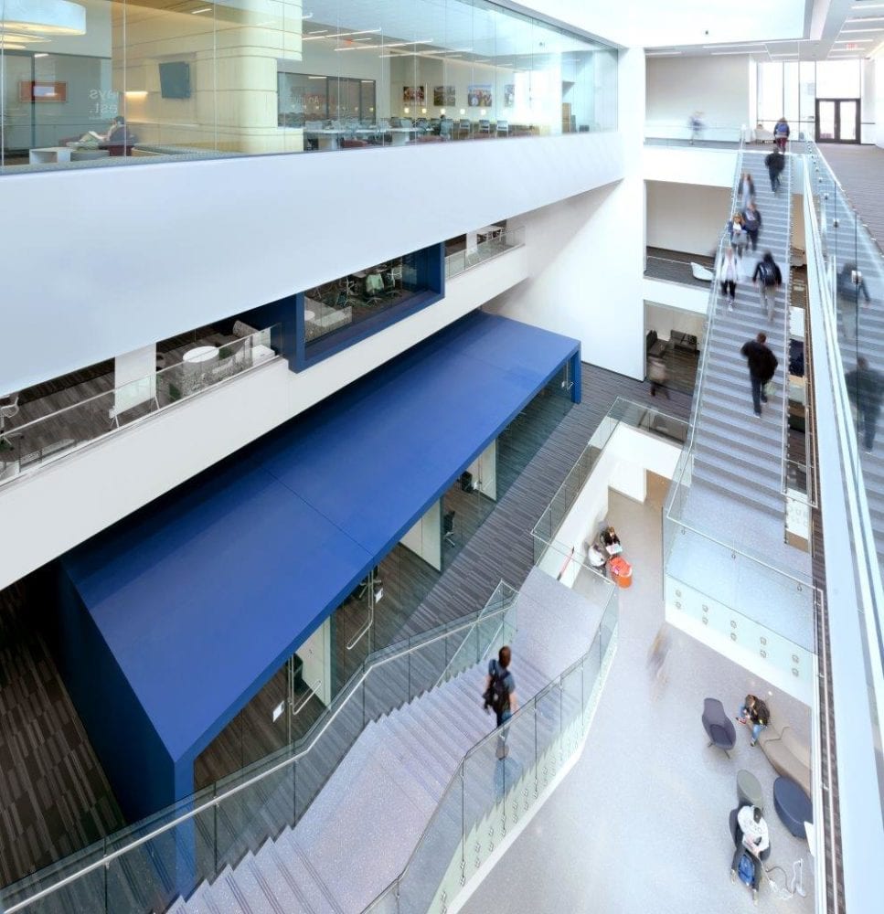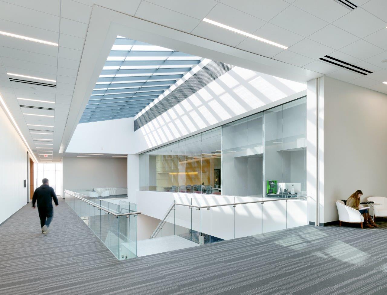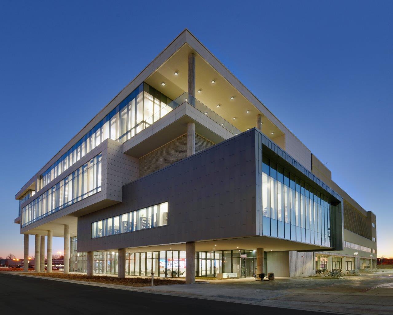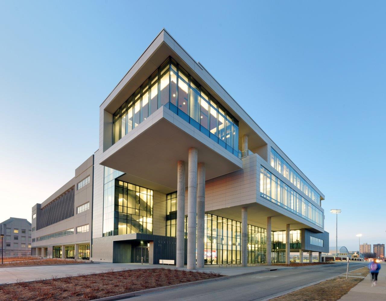 The Glass Hall Renovation and Addition Project is a multi-phase renovation of the four story 150,000 sq. ft. home to the Missouri State University College of Business and the addition of the 37,000 sq. ft, Robert Gourley Student Success Center. The addition is a four-story cast-in-place concrete structure with a skin comprised of cement fiber panels, zinc coated panels and glass curtain-wall, designed by Minneapolis based Perkins + Will. The renovation provides completely remodeled public areas and restrooms, new departmental office entries, improved circulation and orientation, updated mechanical systems and a new fire suppression system, designed locally by Dake Wells Architecture. The building features: