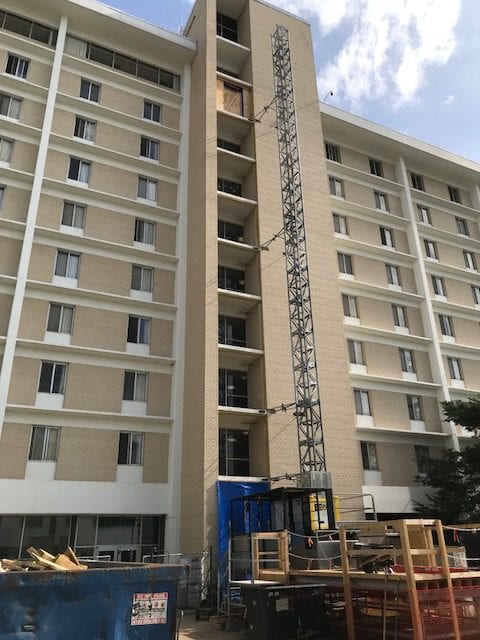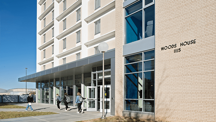 The Woods House renovation project was a 10-story renovation of the building’s heating/cooling system, electrical systems and resident living spaces. Renovations included all new resident room configurations with the addition of two closet spaces and new interior finishes. New windows were added to every resident room as well as added insulation for the HVAC system to operate more efficiently. New commons areas were added to each floor with the addition of an ADA room to enhance the living environment for all students. The original schedule was 11 weeks.  Our field team completed these comprehensive upgrades within 10 weeks.