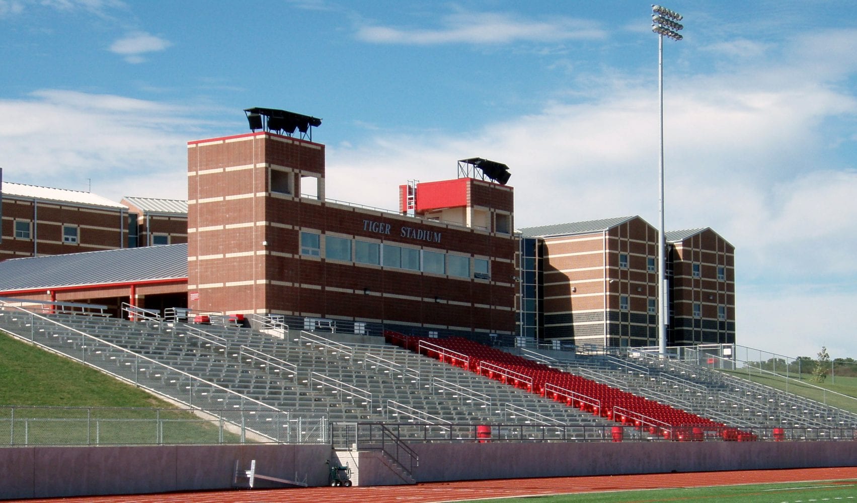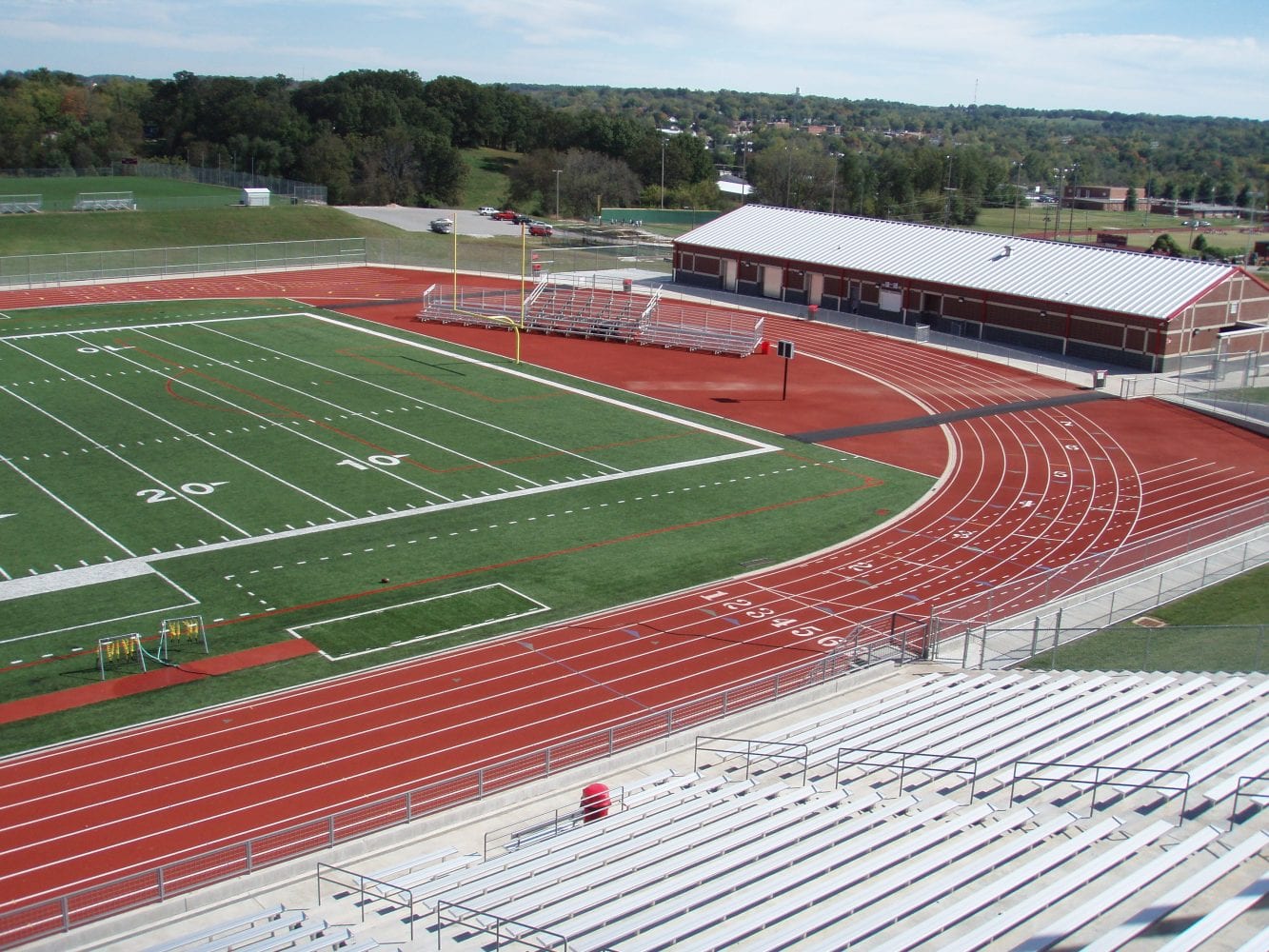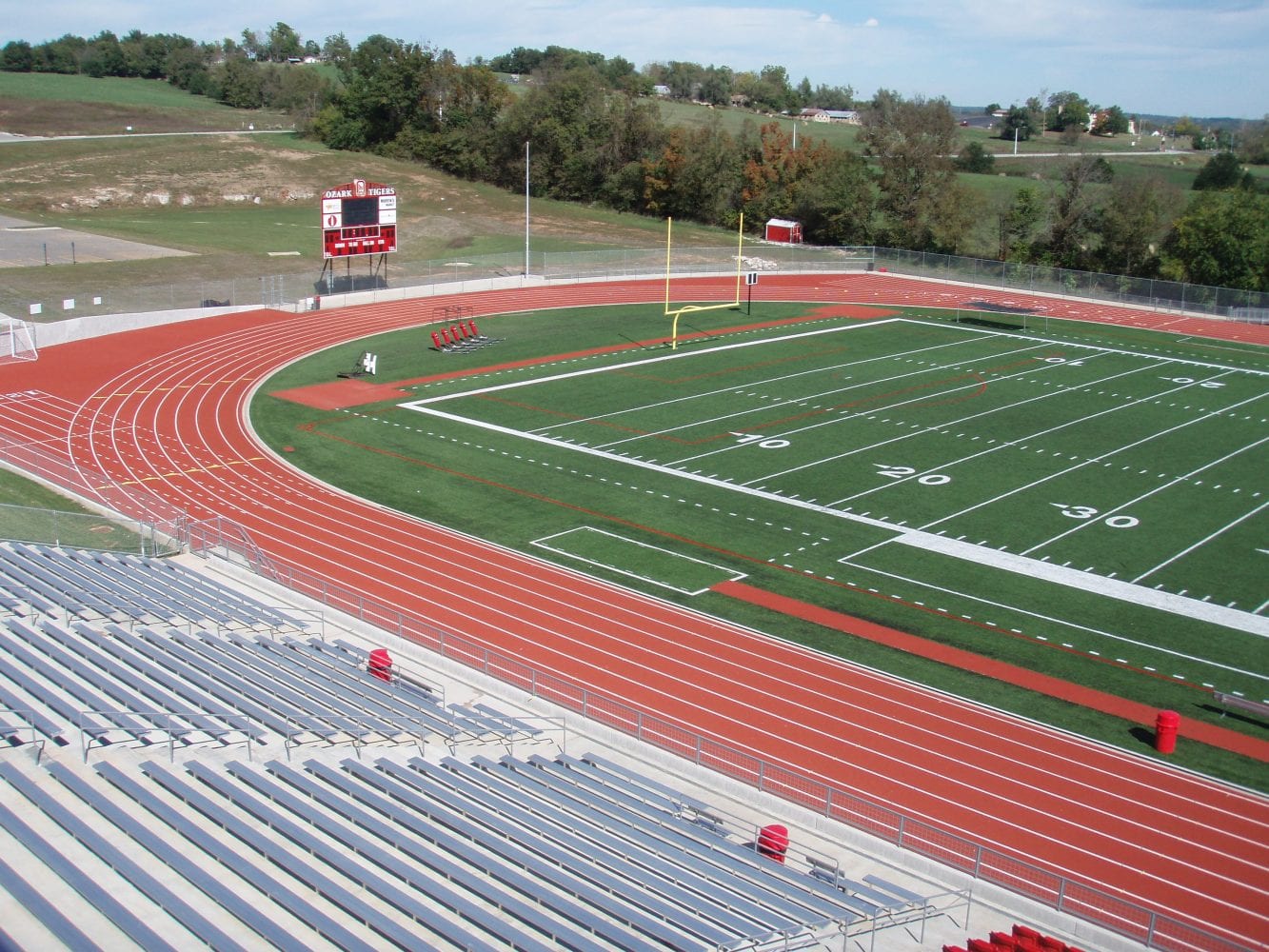 Project included new football field, track and soccer fields, concession area, cast-in-place grandstand, plaza and media booths, camera tower, home and visiting team locker rooms for Ozark School District.