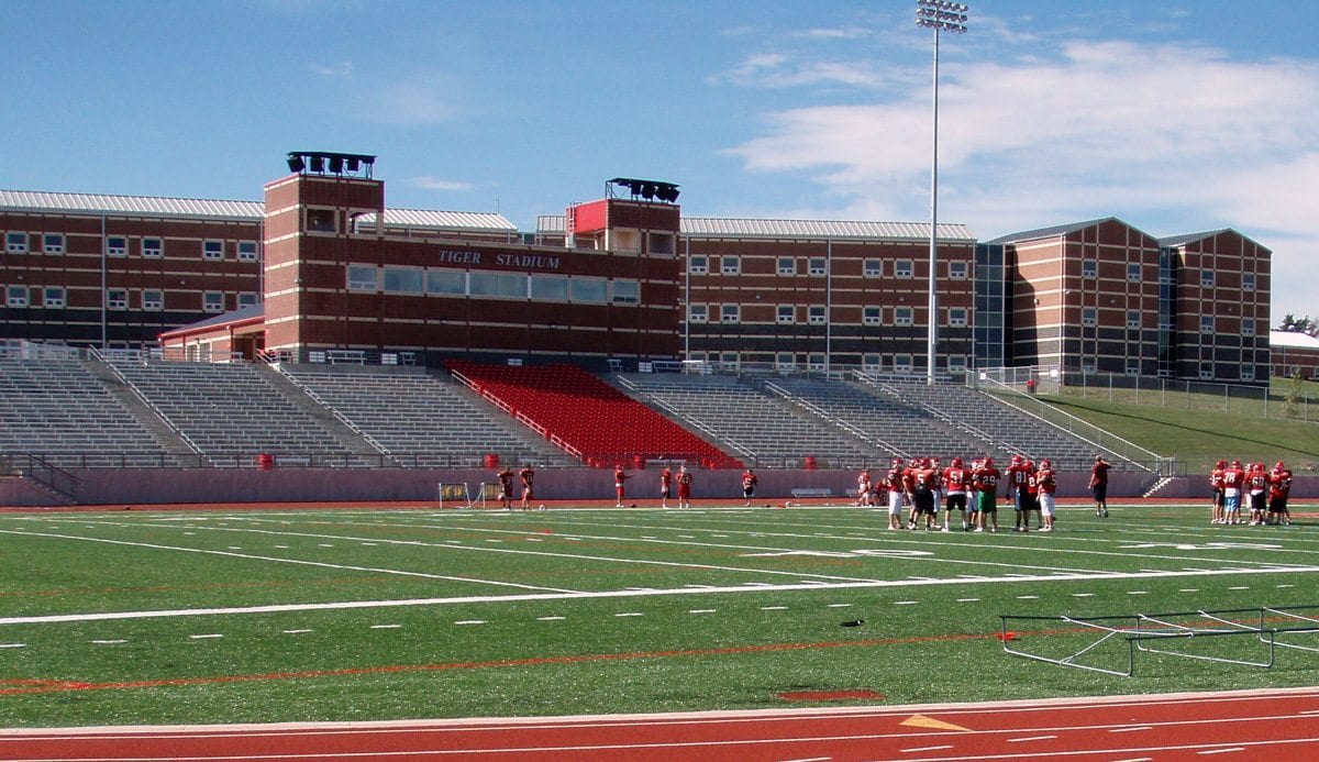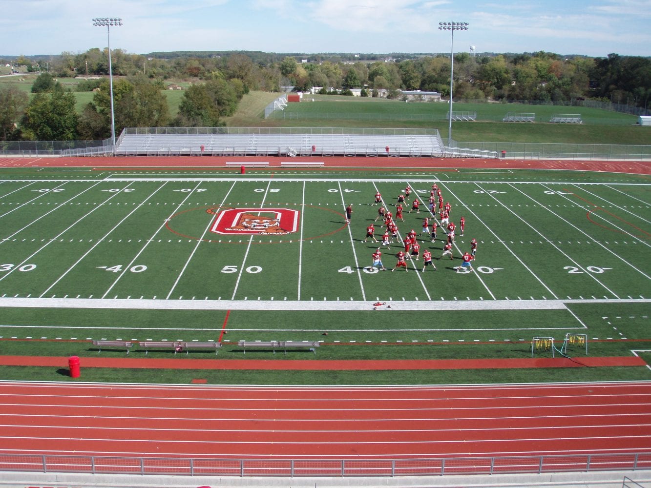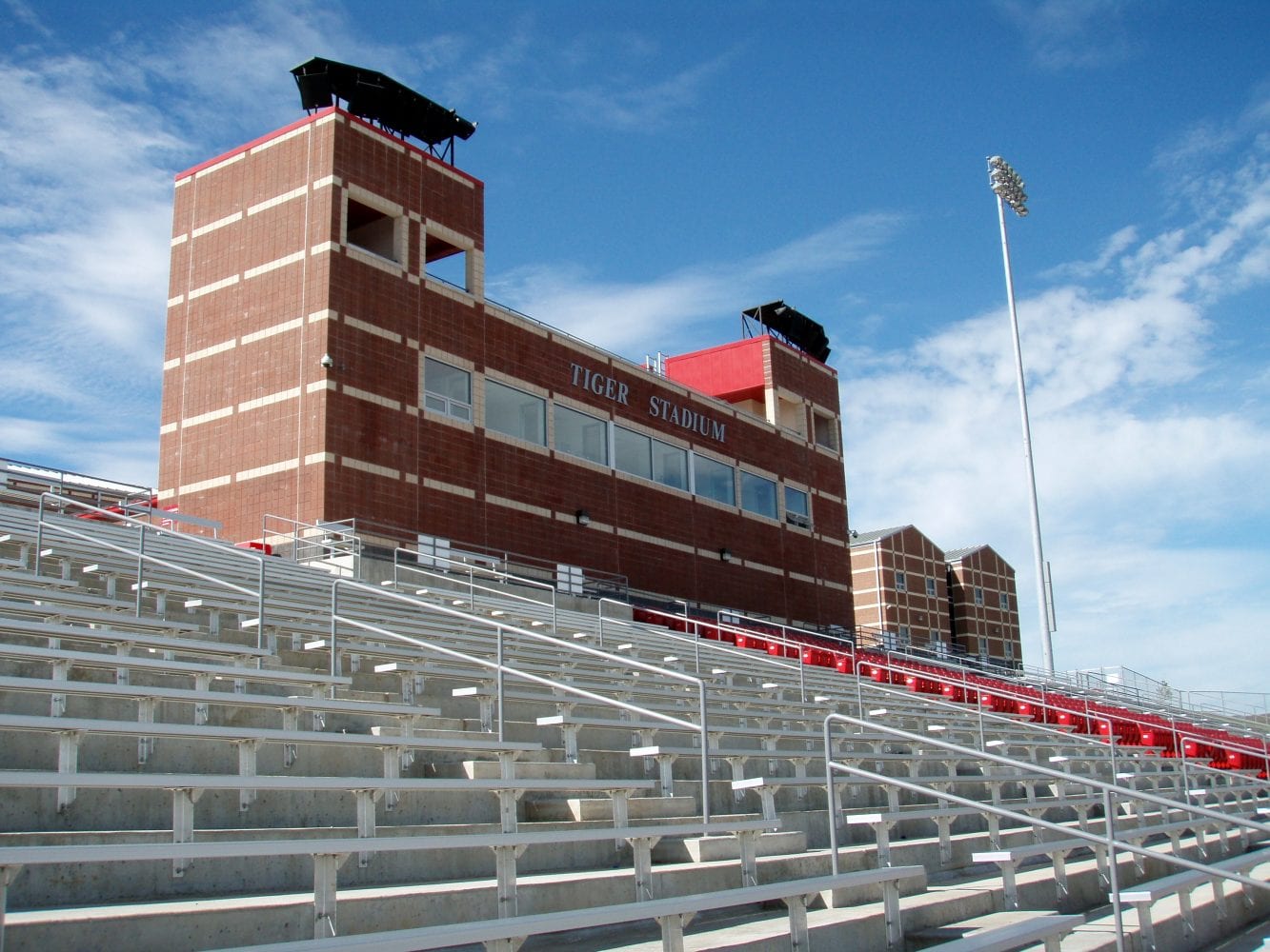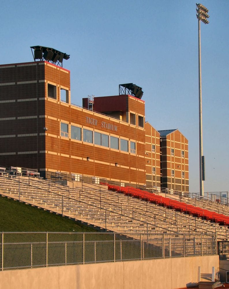 Project included new football field, track and soccer fields, concession area, cast-in-place grandstand, plaza and media booths, camera tower, home and visiting team locker rooms for Ozark School District.