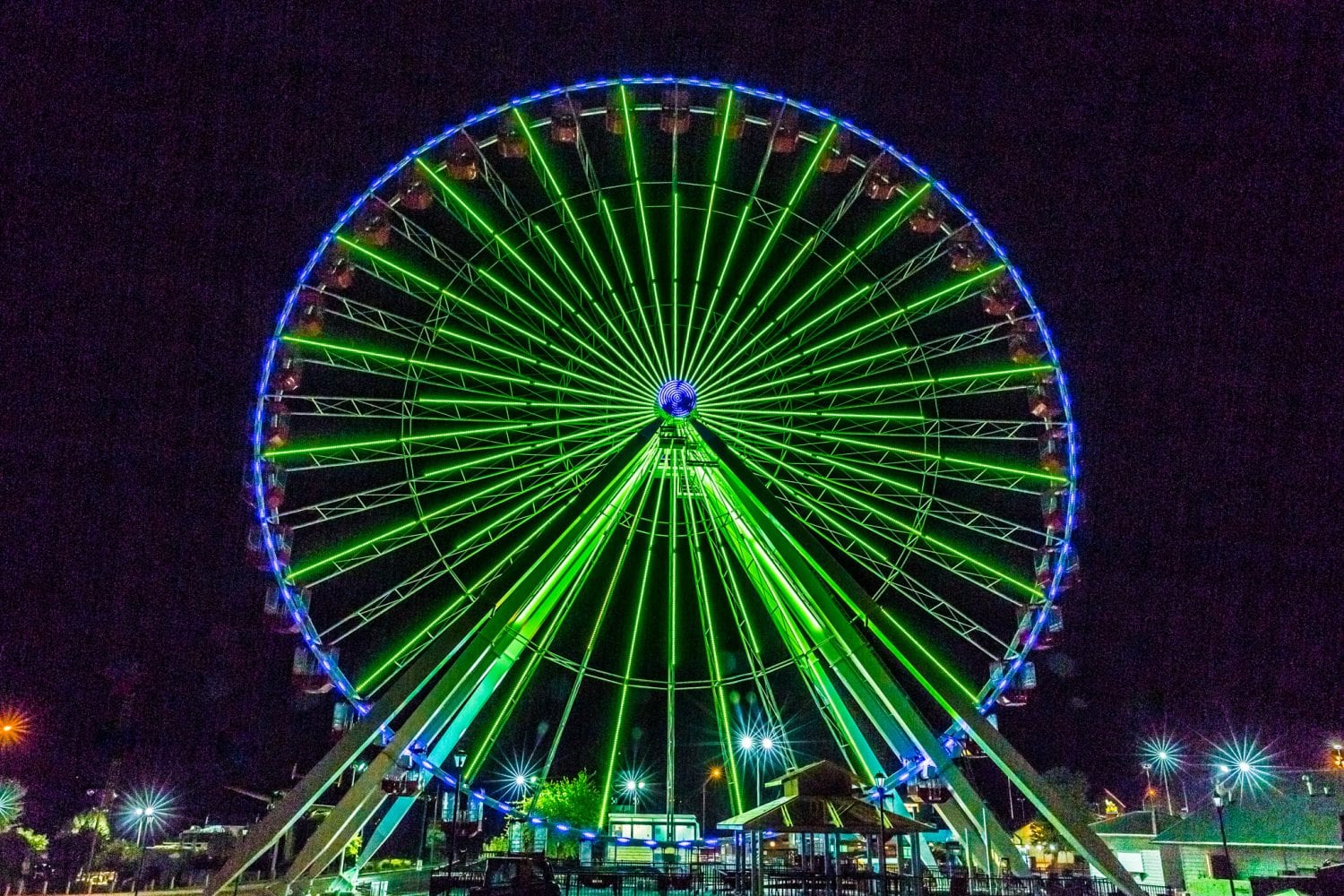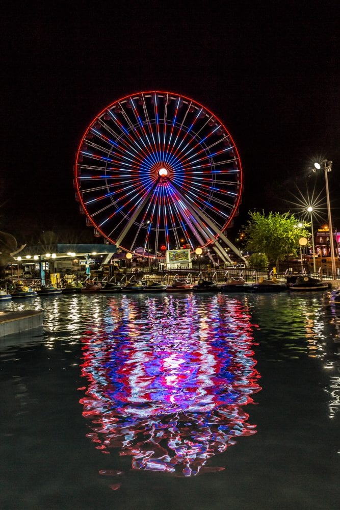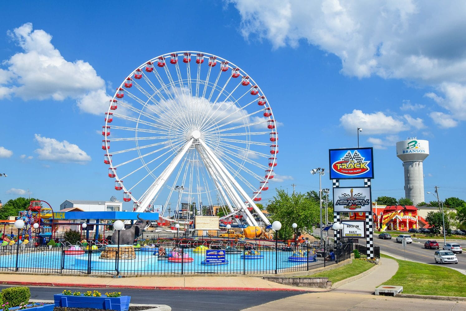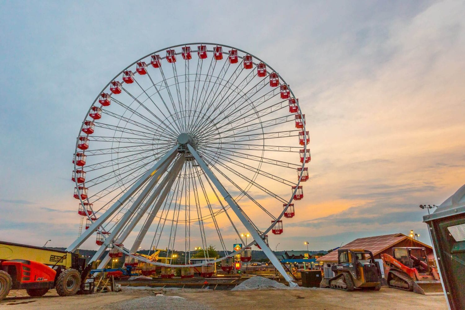 The iconic Navy Pier Ferris Wheel from Chicago has made its way to Branson. The foundation includes 8 drilled piers 23 ft deep, 120 anchor bolts and 2,000 tons of gravel. The Track Family Fun Parks opened the Branson Ferris Wheel on June 23, 2016.