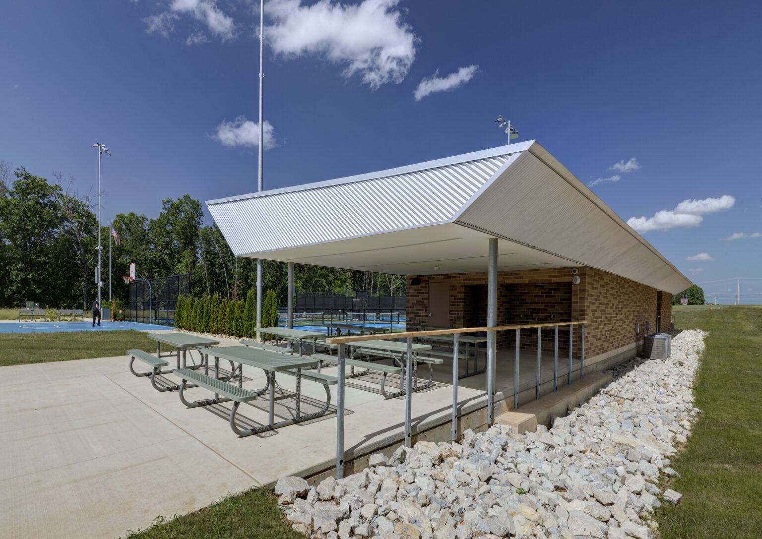Comprehensive and inclusive design: The park offers a wide array of amenities, including six tennis courts, four pickleball courts, a half-court basketball area, hiking and biking trails, a pavilion with picnic areas, an inclusive playground, and a youth sports field—providing opportunities for both active and passive recreation for community to enjoy.